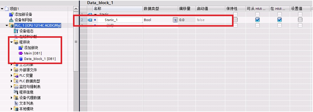 打开项目中"程序块",创建DB块,创建数据,如图 3所示。